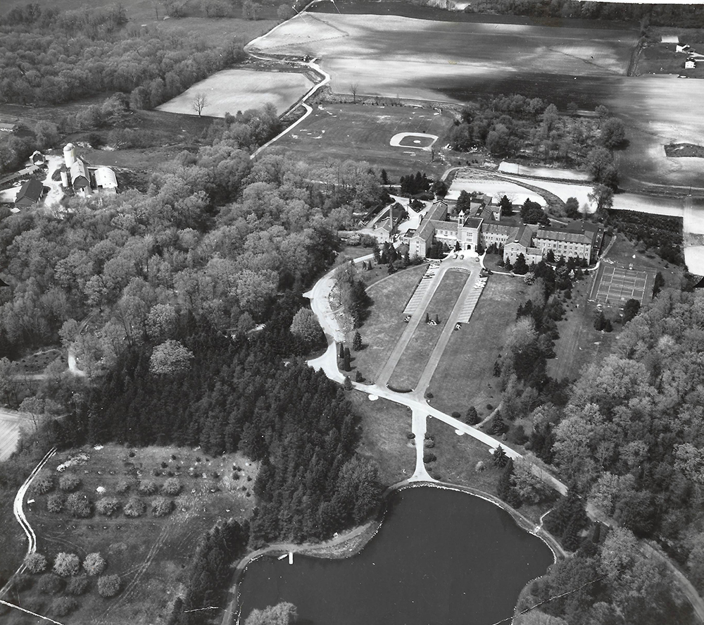 Sometime shortly after the school was completed, bandits came through the area and seeing the building in the middle of a cornfield decided the brothers must have been wealthy to have built such a building. They tied the brothers up and burned their feet with hot lids taken from the old wood-burning stove. However, the brothers were able to convince their captors that they had merely donated the ground and were very poor farmers. (It is interesting to note that their life savings was hidden under the floorboards they were sitting on.) Following that experience, the two brothers came to the Priests and asked to be taken in and to live out their lives here in the school. The brothers willed the farm to the Society of the Precious Blood upon their death. Thus, the school came to own nearly 400 acres which was farmed to produce the food to feed the students and staff over the years. The students were here year around except for a two-week vacation sometime in the summer. All summer they were busy in the fields doing those chores necessary to feed them the next year. The former students who have come back to visit tell many tales about the various chores they performed while here in the seminary.